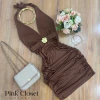 O vestido drapeado com detalhe floral é a escolha ideal para quem busca um look moderno, sofisticado e cheio de personalidade. Seu decote halter profundo, que amarra no pescoço, valoriza o colo e traz sensualidade na medida certa.